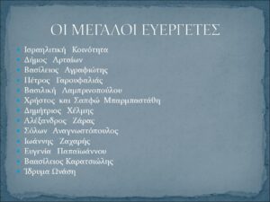 από την οποία βγήκαν λαμπροί μουσικοί με αξιοσημείωτη καριέρα στο ελληνικό μουσικό στερέωμα. Οργανώνει θεατρικές παραστάσεις, προσπαθεί να συμβάλει στην ένταξη των προσφύγων στην αρτινή κοινωνία, οργανώνει μαθήματα χορού και προωθεί κοινωνικές και πολιτισμικές παρεμβάσεις στην κατεύθυνση της αστικοποίησης.