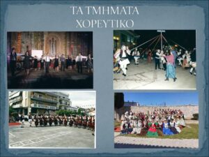 με ένα μικτό χορευτικό συγκρότημα παραδοσιακών χορών. Κατά τη διάρκεια της μέχρι σήμερα παρουσίας του πραγματοποίησε πολυάριθμες εμφανίσεις τόσο στις πόλεις της Ελλάδας, όσο και του εξωτερικού και απέσπασε πολλές τιμητικές διακρίσεις. Σήμερα το χορευτικό τμήμα του Συλλόγου αποτελείται από τμήματα παιδικά και εφηβικά, ενήλικων αρχαρίων, γυναικών και μικτό. Διατηρεί συλλογή παραδοσιακών στολών ( ανάμεσά τους και αυθεντικές )