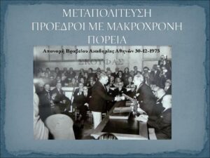 Η μεταπολιτευτική περίοδος χαρακτηρίζεται από την ύπαρξη των μακροβιότερων προέδρων του συλλόγου, οι οποίοι συνέβαλαν σε μεγάλο βαθμό στην εξέλιξή του και το άνοιγμά του στην αρτινή κοινωνία. Επί των ημερών τους ο σύλλογος απέκτησε ιδιόκτητο χώρο, την πνευματική του στέγη, δέχθηκε σημαντικές δωρεές, με αποτέλεσμα να λειτουργεί δύο μουσεία, το Ιστορικό Μουσείο και το Λαογραφικό Μουσείο, καθώς και να απονέμει κάθε χρόνο τα αγραφιώτικα και μπαρμπαστάθεια βραβεία, τα οποία έχουν πλέον αποτελέσει θεσμό για την πόλη μας. Οι πρόεδροι αυτοί είναι με χρονολογική σειρά, ο Γιάννης Τσούτσινος, σημαντικός λόγιος και νομικός.