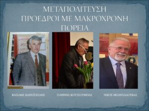 Επί των ημερών του παραχωρήθηκε στο σύλλογο ο «αέρας» της πνευματικής στέγης, ο σύλλογος γιόρτασε τα εκατοντάχρονά του και προχώρησε στην έκδοση πονήματος για την ιστορία του, διοργάνωσε συμπόσια και συνέδρια. Ο Γιάννης Κουτσούμπας. Επί των ημερών του ο σύλλογος συνδέθηκε με αξιόλογα εκπαιδευτικά ιδρύματα, όπως το Πανεπιστήμιο Ιωαννίνων, η Εκπαιδευτική Εταιρεία και το ΤΕΙ Ηπείρου, διοργανώνοντας πληθώρα επιστημονικών και επιμορφωτικών εκδηλώσεων και παγιώνοντας τη λειτουργία των δύο Μουσείων και της Πινακοθήκης. Ο Νίκος Μπανταλούκας. Επί των ημερών του επήλθε συμφωνία με το Ωνάσειο Ίδρυμα και ανακαινίστηκε η αίθουσα της πνευματικής στέγης του συλλόγου, διαμορφώθηκε και λειτουργεί η νέα σύγχρονη στέγη της Φιλαρμονικής, συγκροτήθηκε η παιδική βιβλιοθήκη και οργανώθηκε το πανελλήνιο συνέδριο για τα 100 χρόνια από τη μικρασιατική καταστροφή με συμμετοχή κορυφαίων επιστημόνων και του πρώην ΠτΔ, Προκόπη Παυλόπουλου.